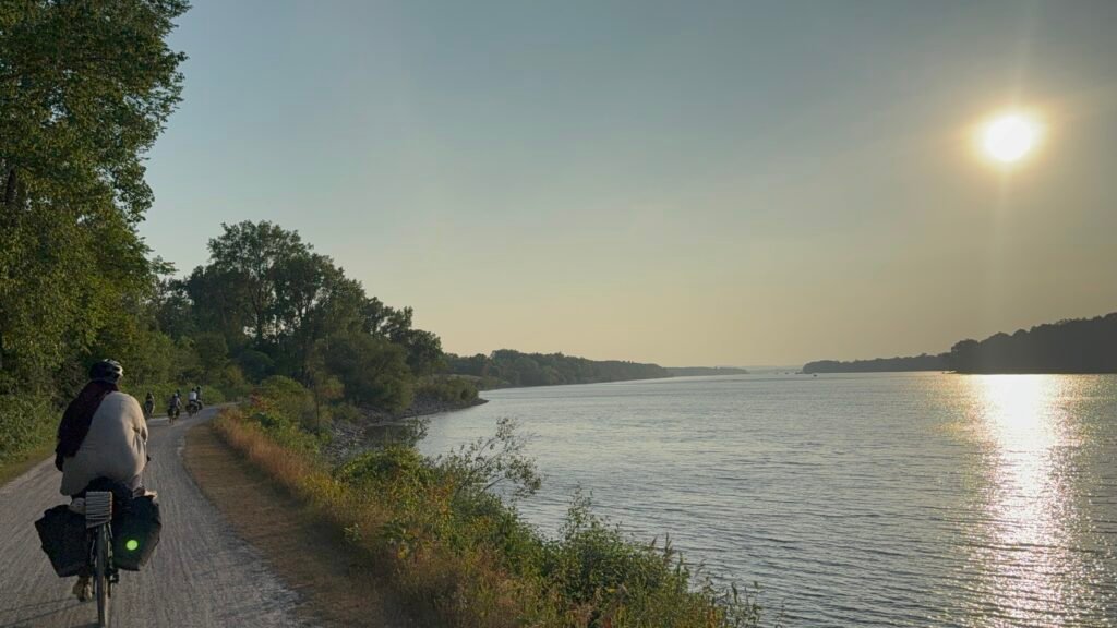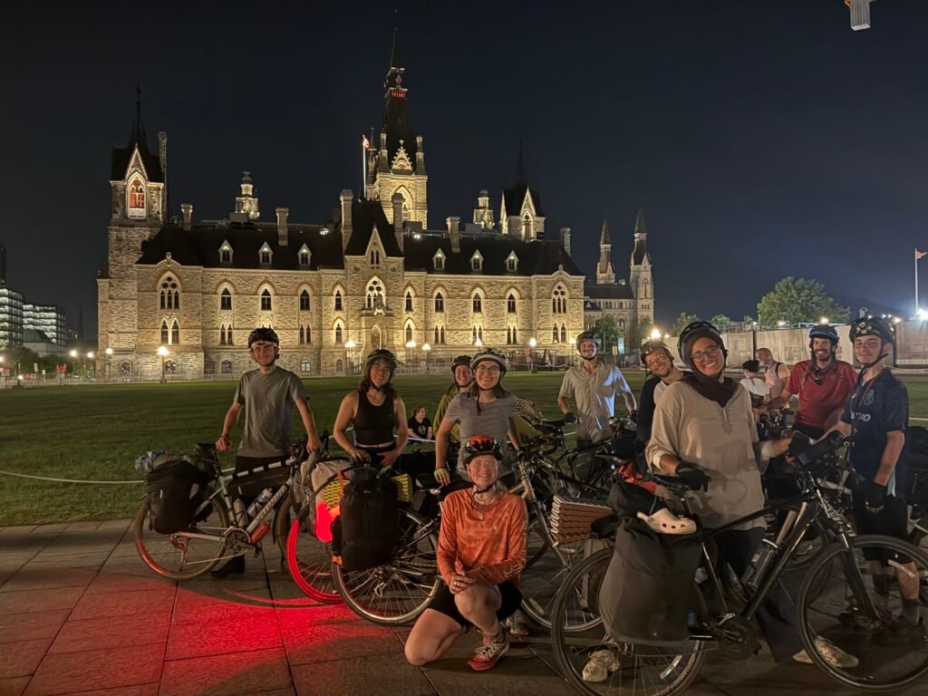 Après cette longue journée de vélo sous 29 °C, on se battait avec nos bouteilles d’eau pour se rafraichir. Puis on a été récompensé par un magnifique couché de soleil pendant qu’on remontait la rivière des Outaouais en direction d’Ottawa. Tout simplement sublime.