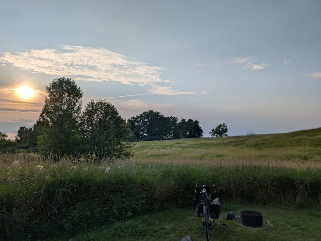 Après avoir rouler toute l’après-midi, le GPS nous indique 5 km en ligne droite. Ça semblait presque trop beau. En réalité c’était une pente ascendante presque continue, alors qu’on avait déjà la journée dans le corps. Plusieurs l’ont monté à pied et seulement quelques-uns ont réussi à la gravir à vélo.