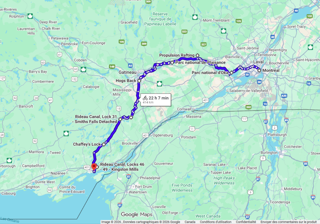 Pour cette édition 2025 de Voyager Autrement, nous voulions nous rendre au parc provincial des Sand Banks en Ontario. Néanmoins, en raison de nombreux imprévus, notamment des bris d’équipements, nous avons raccourci notre itinéraire à partir d’Ottawa pour se rendre à Kingston en suivant les écluses de la rivière Rideau.