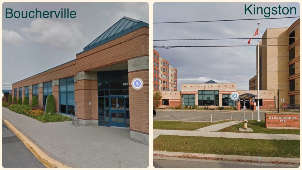 Je m’étais donné l’objectif de trouver un panneau similaire pour créer un lien concrèt entre les deux villes. Je ne l’ai malheureusement pas trouvé, mais j’ai tout de mpme reconnu quelque chose de familier : le bâtiment Rideaucrest, dont l’architecture était presqu’identique à la bande commerciale près de chez moi